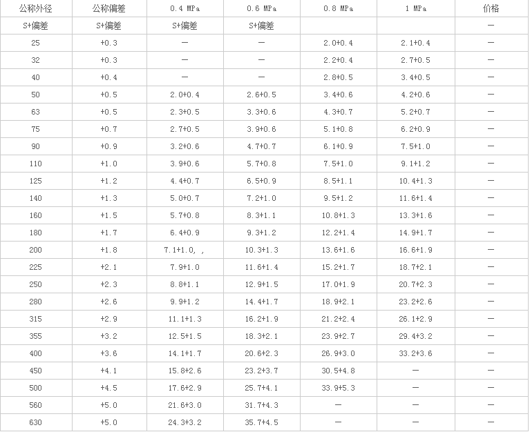 frpp管規(guī)格表
